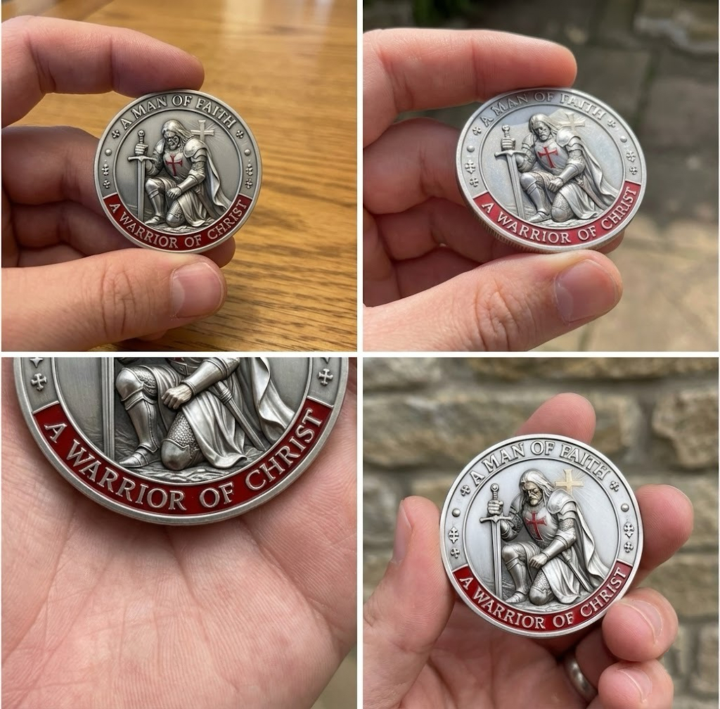 A finely crafted commemorative coin inspired by the timeless spirit of faith, chivalry, and moral strength. This piece unites sacred symbolism with knightly valor, making it a powerful collectible for believers, history enthusiasts, and those who value inner strength and protection.